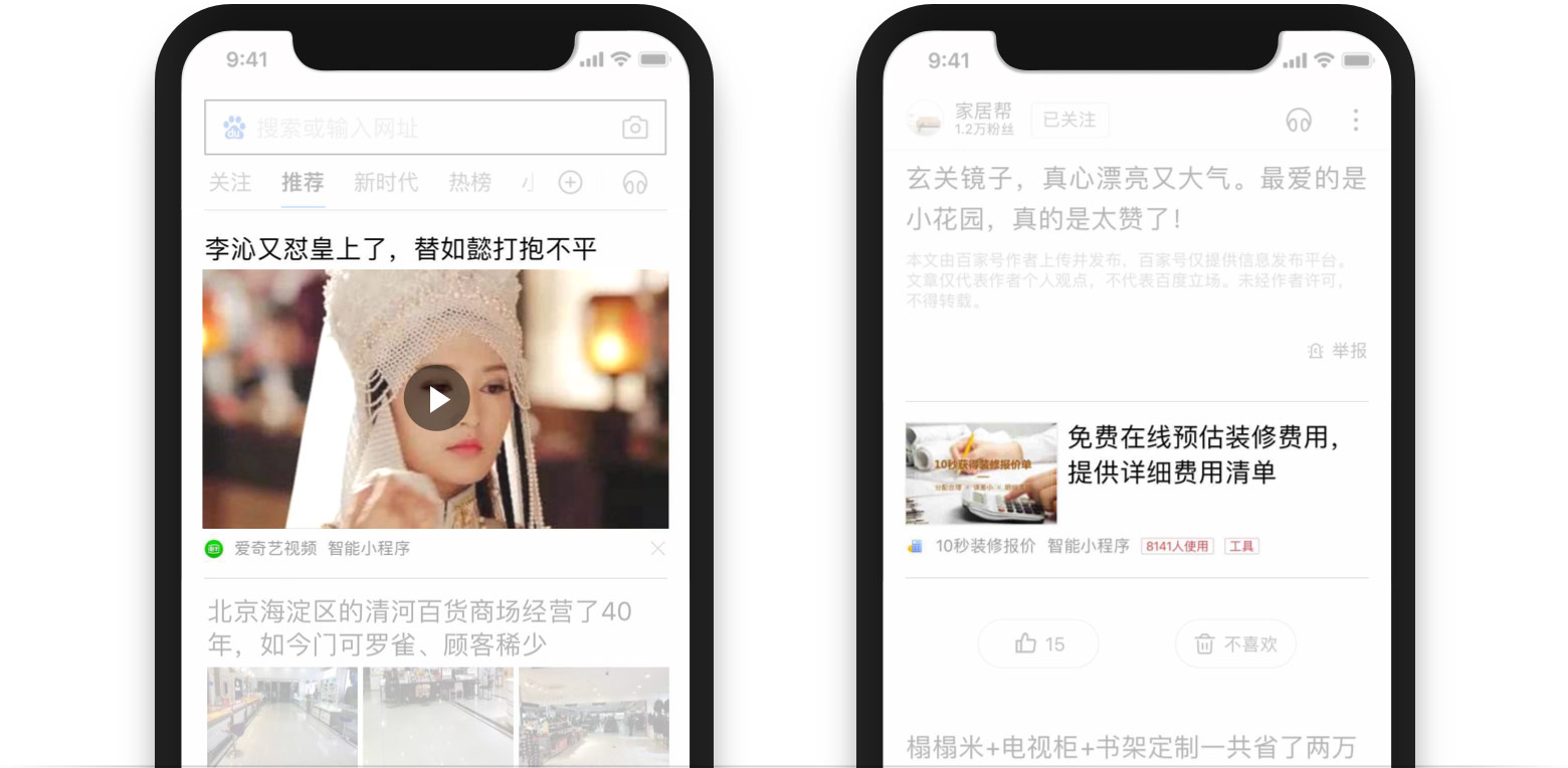依托以百度App為代表的全域流量,一次開發(fā),多端可運行,流量渠道更多元。